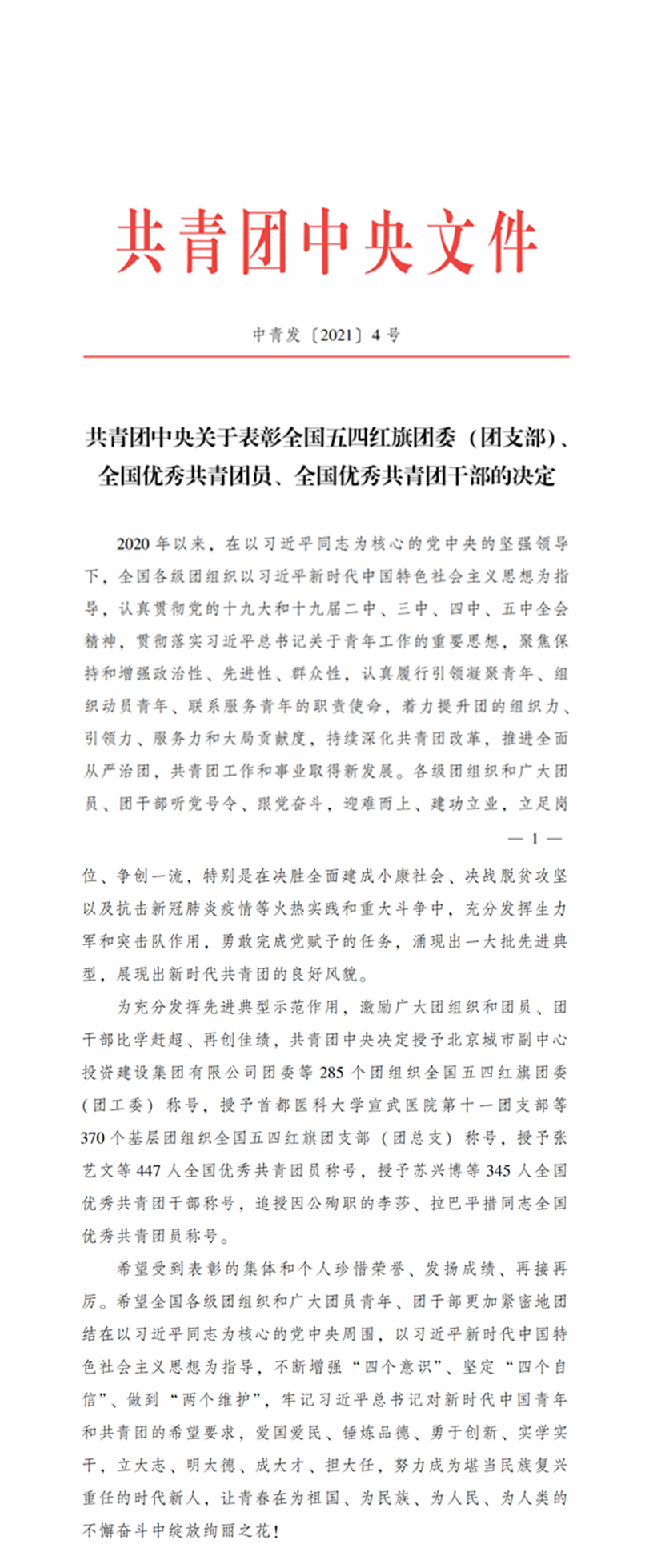 共青团中央本次授予285个团组织全国五四红旗团委称号,授予370个团组织全国五四红旗团支部称号,授予447人全国优秀共青团员称号,授予345人全国优秀共青团干部称号,并追授因公殉职的李莎、拉巴平措同志为全国优秀共青团员称号。