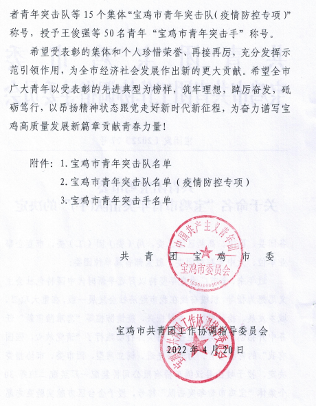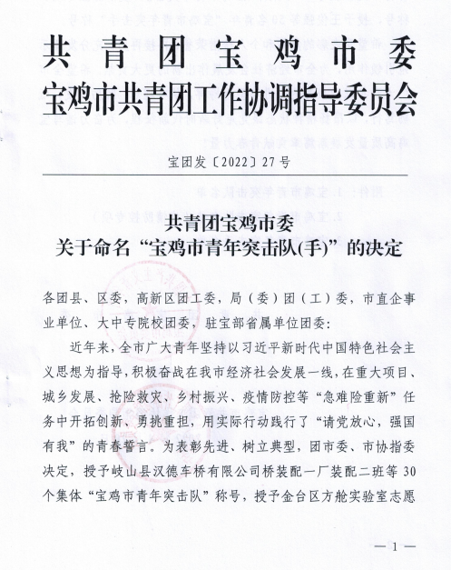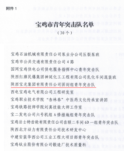 近日,从团市委获悉,6686体育官网股份固封班组被授予“宝鸡市青年突击队”荣誉称号。