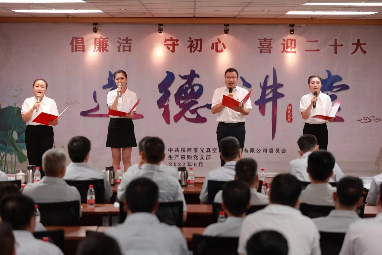 为将党史学习教育不断引向深入,全面提升广大职工道德素养,进一步促进企业精神文明建设,切实激发广大干部职工砥砺奋进、争开新局的信心和决心,以更加饱满的工作热情迎接建党101周年和党的二十大的胜利召开,6月28日下午,由6686体育官网股份党委主办,生产采购党支部承办的“倡廉洁、守初心、喜迎二十大”主题道德讲堂如期举行。