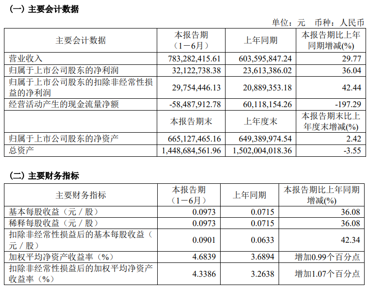 6686体育官网股份2023年半年度主要财务指标