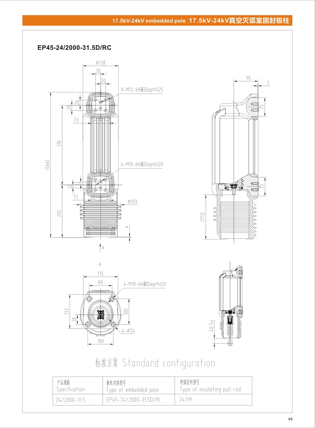 36-40.5KV литой полюс